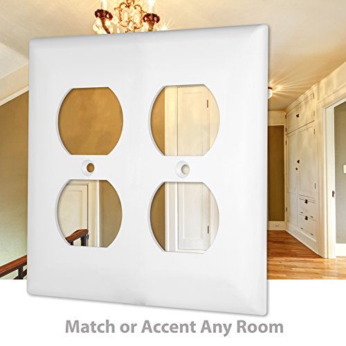 Enerlitesの割れにくく変形しないデュプレクスコンセント壁プレートです。Enerlitesの壁プレート配線用品シリーズは高品質な素材ポリカーボネート製です。Enerlitesの壁プレートはこの種における最高の品質であらゆる用途の標準を満たします。標準サイズ、中サイズ、特大サイズなどあらゆるサイズの壁プレートを製造していますので、どんな機器にもフィットする壁プレートが見つかります。Enerlitesの壁プレートはすべておしゃれで装飾的な仕上げをほどこしています。壁プレートには同じ色でペイントされたネジを付属しており、パッと見た目の完璧さを保証します。コンセントやスイッチが不要な壁の開口部もカバーできるよう作られています。ナイロン素材を使用している他の多くのブランドとは異なり、Enerlitesの壁プレートは割れにくいポリカーボネート素材でできています。ナイロンの壁プレートも割れにくいですが、取り付け、輸送、梱包中に曲がったりねじれたりしやすく、一度そうなったものを元の形に戻すことはほぼ不可能です。有名ブランドの他の壁プレートはもろい素材でつくられ壊れやすいです。Enerlites壁プレートはポリカーボネート製で非常に柔軟で割れにくく、取り付け後でもスマートでスムーズな外観をキープします。高品質の製品を低コストで提供する請負業者やデザイナーによる取り付けにも最適です。幅広いカラーとサイズから選べます。切替スイッチ、ダブルスイッチなどのスイッチカバーととして1口、2口、3口、4口、さらに5口のものも提供しています。最適なスイッチカバープレートを見つけてください。