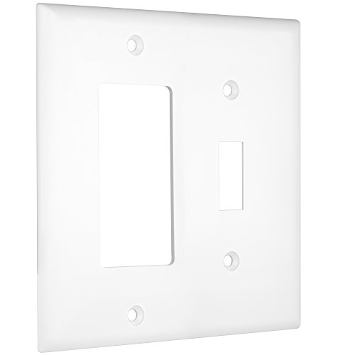 Enerlites Decorator /漏電遮断器Rocker壁プレート、標準サイズ、壊れないポリカーボネート 2 Gang Decorator / Toggle 10 Pack ホワイト 881131-W-10PCS