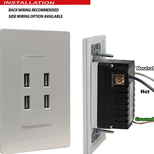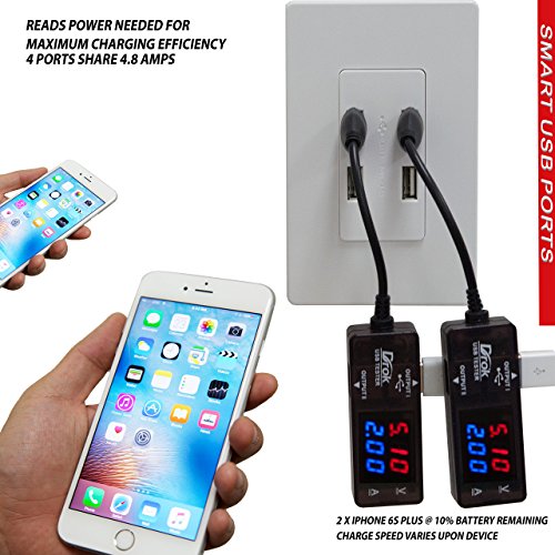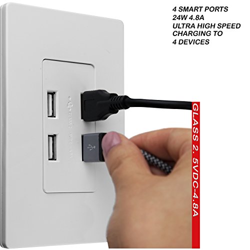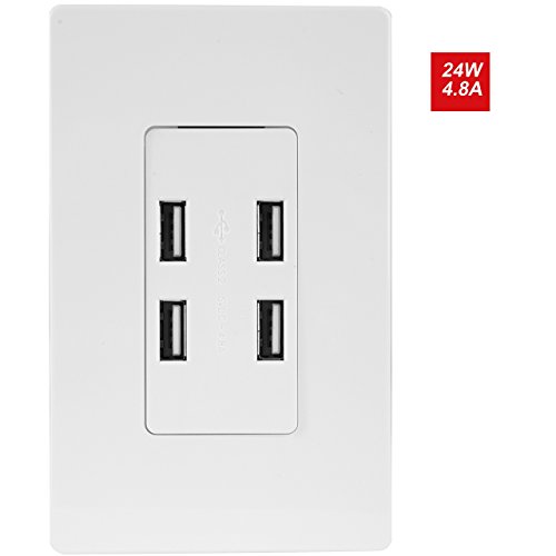 Enerlites 62000-4USB48 24W 4.8A Ultra High-Speed 4-Port Smart USB Charger In-Wall Outlet , Two Wall Plates Included, White [並行輸入品]