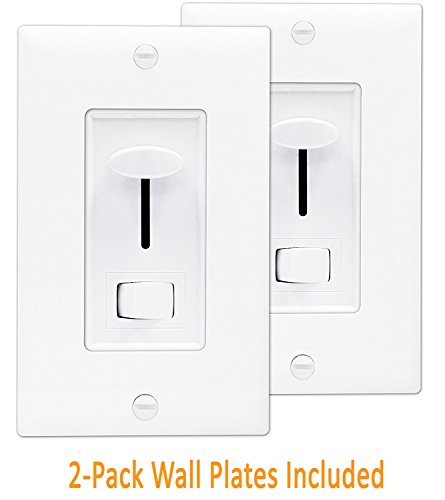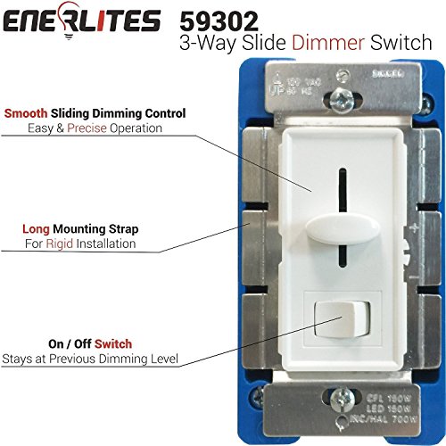 Enerlites 59302のLED調光スイッチ3ウェイ調光機能付きLED / CFL /白熱灯/ハロゲン、シングルポール – ホワイト 2 Pack ホワイト 59302-W-2PCS