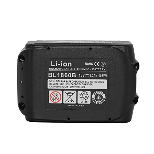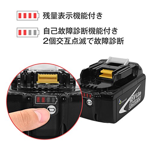 - 【大容量】 マキタ 18V 互換 バッテリー 残量表示付き BL1860b 6000mAh リチウムイオン 残容量表示+自己故障診断付 ★BL1830 より2倍長持ち 大容量タイプ