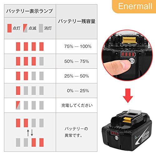 Enermall マキタ 18v バッテリー 互換 BL1860b 2個 6000mAh LED残量表示付き マキタ電動工具 18V BL1830 BL1840 BL1850 BL1860 対応 安心の1年保証