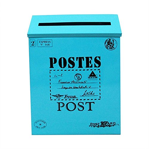 多用途 メールボックス ポストカード風 投書箱 アンティーク 調 郵便 ポスト ブルー