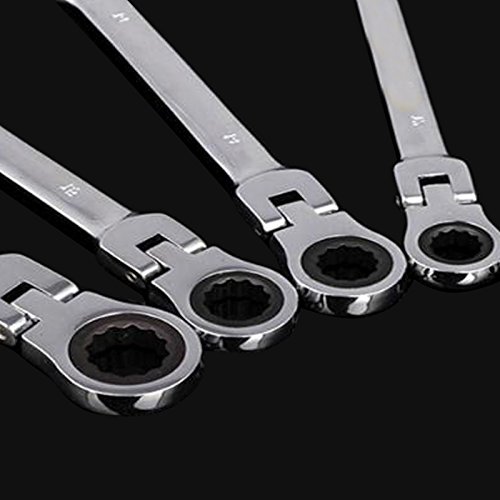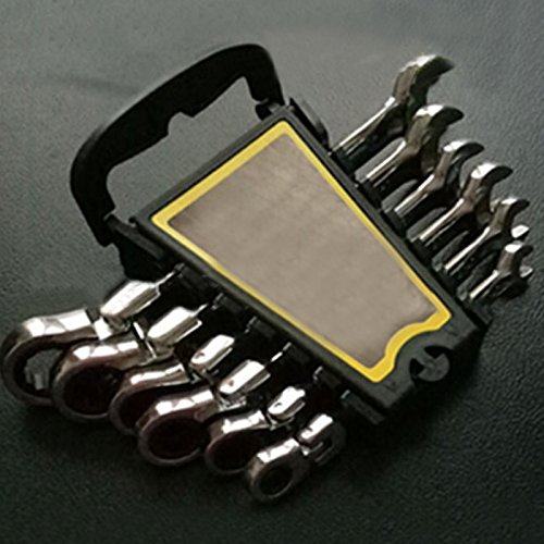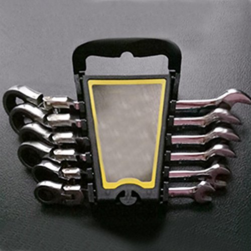 Enshey フレックスラチェットレンチセット 8-17mm 6点セット 180度首振り 送り角度5度 両用ヘッド スパナ ラチェット