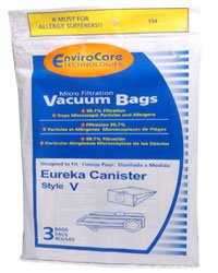 Pack of 3 EnviroCare Technologies Micro-Filtration Vacuum Bags.Designed to fit Eureka Canister style V vacuums.