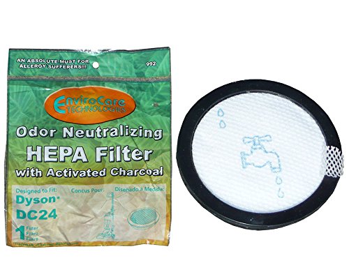 Replacement Filter made by Envirocare.Designed to fit with or replace genuine original (OEM) manufacture part numbers: 918976-01, 913788-01, Designed to fit Dyson Upright Bag less Vacuums: Dyson DC24 All Floors Lightweight Alternative, Multi Floors Ultra Lightweight Bagless, Animal Bagless, Dimensions: Diameter - 5 1/2" top edge 5" bottom edge, 1" thickness, HEPA filtration systems trap and seal-in 100% of dust mites, pollens, ragweed, mould spurs, microscopic particles, bacteria, dust mites, germs as small as 0.1 micron, other allergy causing agents, and 99.9% of pet dander.