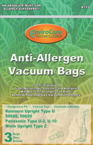 Anti allergen paper bag that replaces: Kenmore Allergen 50688/90 Panasonic U10 Miele Z