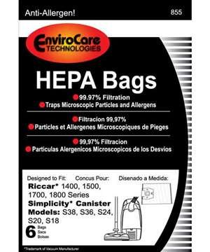 Riccar Bag Paper Type H Hepa 6 Pack RC 1400 RC 150 0 Simplicity S13 S13L S14 S14CL S18 S24 1700 1800