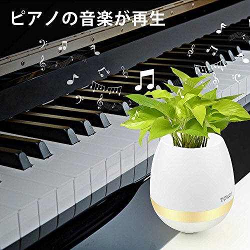 TOKQI 植木鉢 音楽 おしやれ プラスチック クリスマスプレゼント インテリア鉢 フラワーポット ワイヤレスブルートゥーススピーカー ナイトライト 虹色 スマート音楽花瓶 卓上飾り物 置物 プラスチック植木鉢 タッチピアノ音楽再生 USB充電可 底穴あり 直植え可 防火ABS素材を採用 枕元ランプ ホワイト