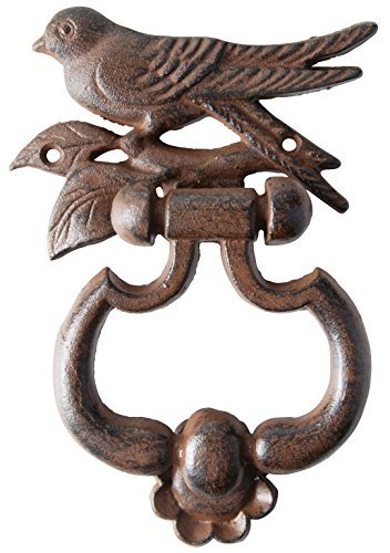 Measures 1-1/2-inch H by 5.8-inch L by 7-inch W. Add a touch of charm to your doorway with this cast iron bird door knocker. This design will leave an impression on all guests that arrive.