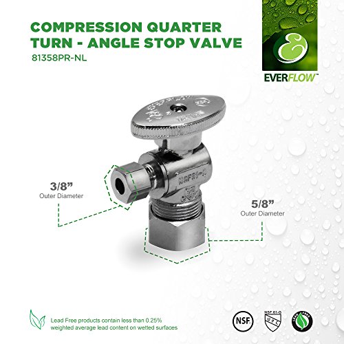 Everflow 81358pr-nl四半期Turn Angel水停止バルブ、クロムメッキ真鍮ボディとチューブ圧縮X 3 / 8インチ、5 / 8インチ外径圧縮継手、メタルハンドル、プレミアム鉛フリー