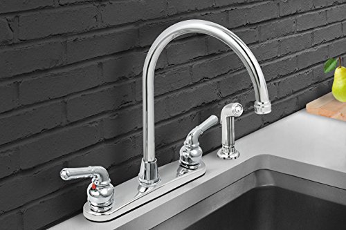 Everflow Supplies KFKT17188-20 Complete Installation Kit Lead Free Two-Handle Kitchen Faucet with Sprayer and 1/2" Fip X 3/8" Supply Lines, Chrome [並行輸入品]