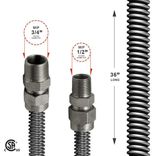 Flextron FTGC-SS12-36K 36 Flexible Gas Line Connector with 5/8 Outer Diameter and 1/2 x 3/4 MIP Fittings, Stainless Steel by Flextron