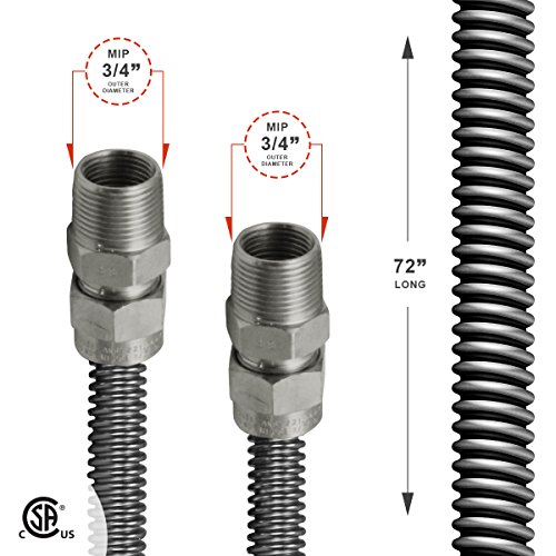 Flextron FTGC-SS12-72N 72 Flexible Gas Line Connector with 5/8 Outer Diameter and 3/4 x 3/4 MIP Fittings, Stainless Steel by Flextron