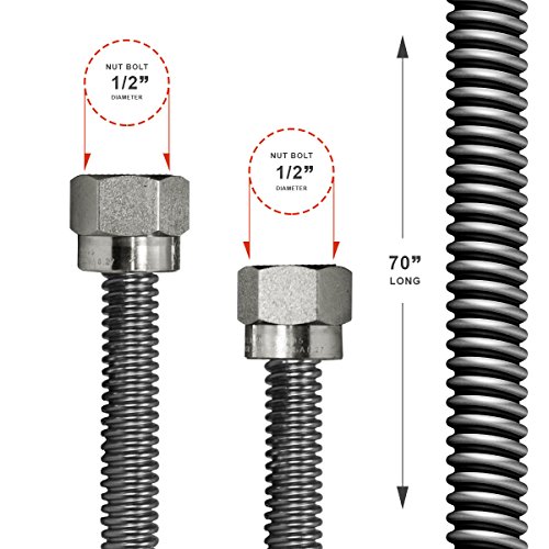 Flextron FTGC-SS38-72 70 Gas Line Connector with 1/2 Outer Diameter and Nut Fittings, Stainless Steel by Flextron
