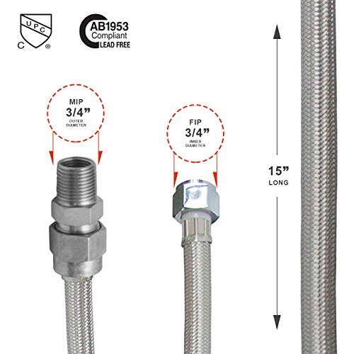 Flextron ftwc-b34 – 15b 15インチLead Free編組給湯器コネクタwith 3 / 4インチ内部直径& 3 / 4インチFIP x MIP継手3 / 4インチ、最大化腐食抵抗とパフォーマンス