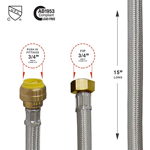 Flextron ftwc-b34 – 15 C 15インチLead Free編組給湯器コネクタwith 3 / 4インチ内部直径& 3 / 4インチFIP x 3 / 4インチプッシュ継手で、最大化腐食抵抗とパフォーマンス