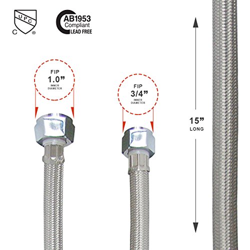Flextron ftwc-b34 – 24d 24インチ鉛フリー編組給湯器コネクタwith 3 / 4インチ内部直径& 3 / 4インチFIP x 1インチFIP継手、最大化腐食抵抗とパフォーマンス