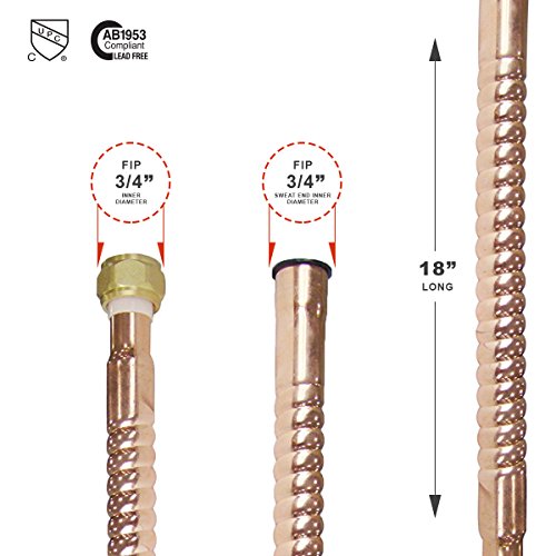 Flextron ftwc-c34 – 18e内部直径18インチ鉛フリーロング銅水ヒーターコネクター、3 / 4インチ& 3 / 4インチFIP x 3 / 4インチ汗継手、最大化腐食抵抗とパフォーマンス