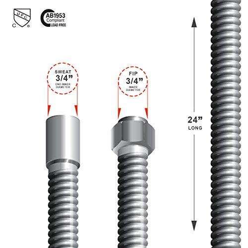 Flextron ftwc-s34 – 24e 24インチ鉛フリーCorrugatedステンレススチールチューブコネクタ水ヒーター用with 3 / 4インチFIP & 3 / 4インチ汗、丈夫、最大化腐食抵抗&パフォーマンス