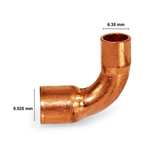 Everflow Supplies cclt3412 90度C X C銅Long半径エルボ継手with 2つ銅はんだカップ 3/8" x 1/4" CCLT3814 1