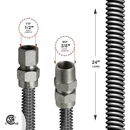 Flextron ftgc-ss14 – 12i 12 "柔軟なガスラインコネクタwith 3 / 8 "外径、3 / 8インチFIP x 3 / 8 " Mip継手、ステンレススチール 24inch FTGC-SS14-24F 1