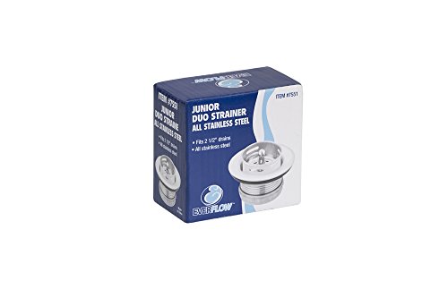 Everflowクロムメッキ仕上げ、ステンレススチールボディJunior Duo Strainer andステンレススチールバスケット挿入交換用7551、2 – 1 / 2インチ排水ジュニアサイズ深いカットスレッド、真鍮ナット