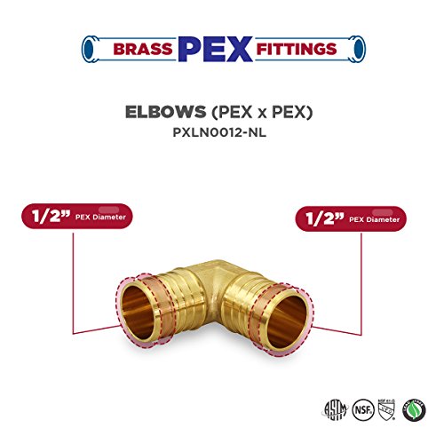 - エルボPEX x 1 / 2インチ、簡単にインストールでき、鉛フリー、DZR真鍮構造のPEXでの耐久性と信頼性