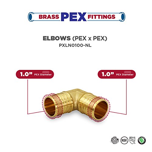 Everflow pxln0100-nl 1インチPex Barbエルボ、鉛フリーDZR真鍮構造、Barb接続、と互換性Pexパイプ配管接続システム、低コスト、耐久性と信頼性簡単にインストール