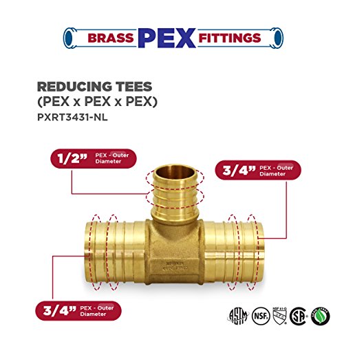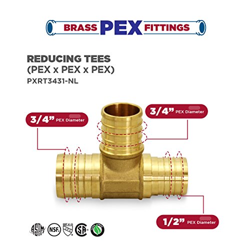 Everflow PXRT3431-NL Lead Free 3/4-Inch x 3/4-Inch x 1/2-Inch Pex Barb Brass Reducing Tee by Everflow