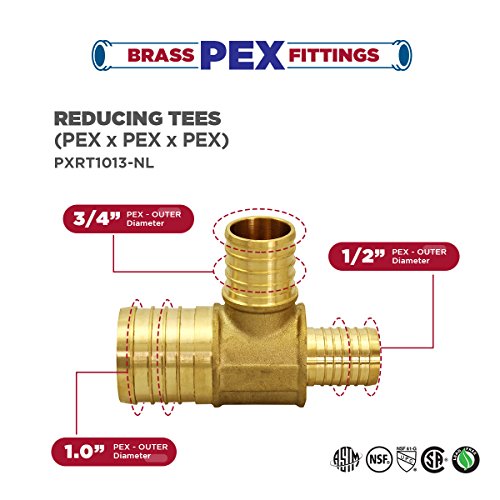 Everflow pxrt1013-nl Reducing Tee PEX x PEX x PEX 1インチx 1 / 2インチx 3 / 4インチ鉛フリーDZR真鍮構造、Barb接続、互換性W/PEXパイプ配管接続、低コスト、耐久性