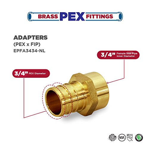 Everflow EPFA1234-NL 鉛不使用 1/2インチ ペックスバーブ 3/4インチ FIP真鍮アダプター 3/4" Barb x 3/4" FIP EPFA3434-NL 1