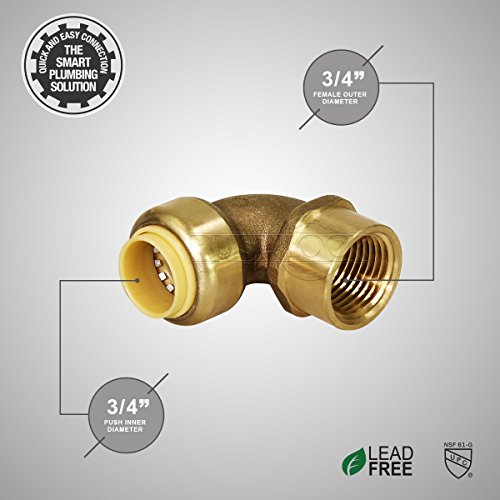 Everflow Pushlock upfe34 3 / 4インチLongプッシュXメスエルボ継手のpush-fit Made、with Lead Free DZR鍛造真鍮、接続Pex、CPVC &銅、pre-lubricatedクイックインストール