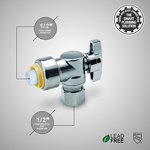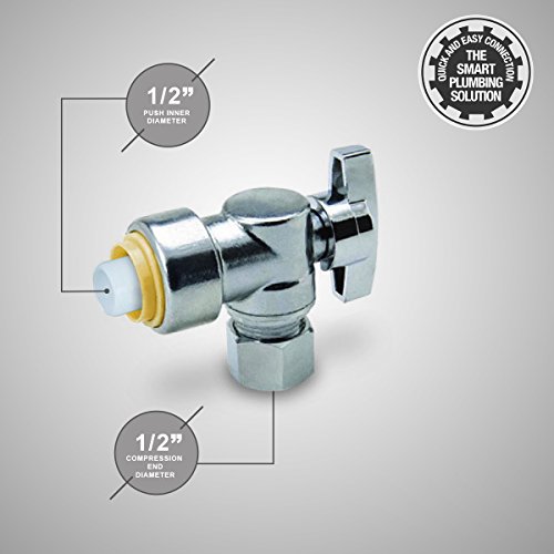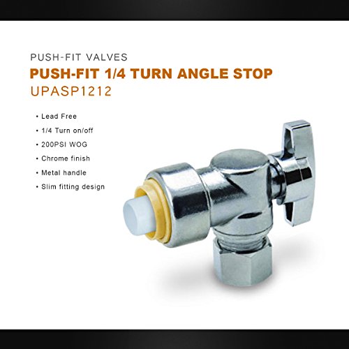 Everflow Pushlock upasp1212 1 / 4 Turn角度Stop for push-fitバルブ、1 / 2 x 1 / 2インチ、クローム仕上げW /メタルハンドルとスリム継手設計、鉛フリーConstruction & 1 / 4 Turn On / Offハンドル