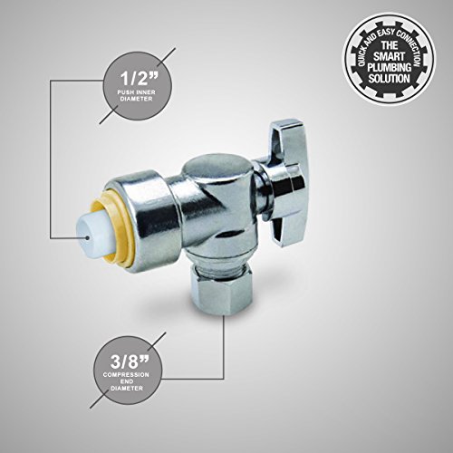Pushlock upasc1238 1 / 4 Turn角度Stop for push-fitバルブ、1 / 2インチプッシュX 3 / 8インチ圧縮、クローム仕上げW /メタルハンドルとスリム継手設計、鉛フリーConstruction & 1 / 4 Turn On / Offハンドル
