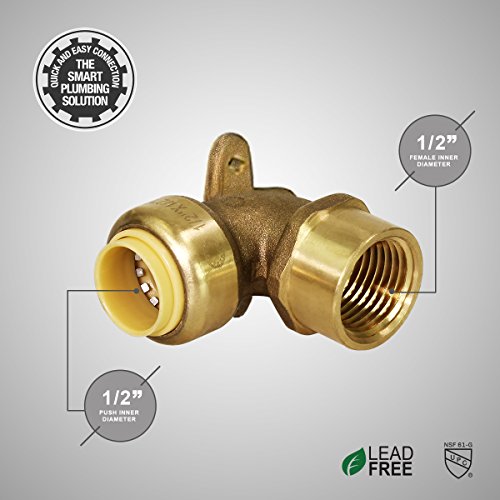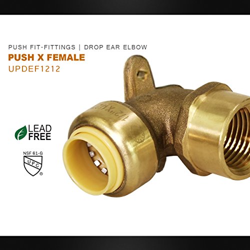 Everflow Pushlock updef1212 1 / 2 Inch LongプッシュXメスドロップ耳エルボpush-fit継手、Made with Lead Free DZR鍛造真鍮、接続Pex、CPVC &銅、pre-lubricatedクイックインストール