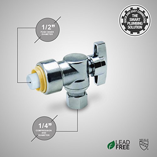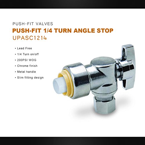 Pushlock upasc1214 1 / 4 Turn角度ストップバルブの、1 / 2インチプッシュX 1 / 4インチ圧縮push-fit、クローム仕上げW /メタルハンドルとスリム継手設計、鉛フリーConstruction & 1 / 4 Turn On / Offハンドル