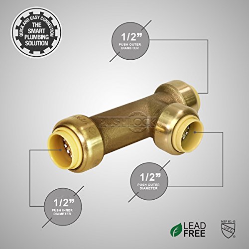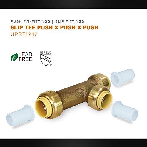 Everflow PushlockスリップT uprt1212プッシュXプッシュXプッシュ1 / 2インチ、飲料水配布、温水暖房アプリケーション、クイック&簡単なインストール、鉛フリーDZR真鍮Construction