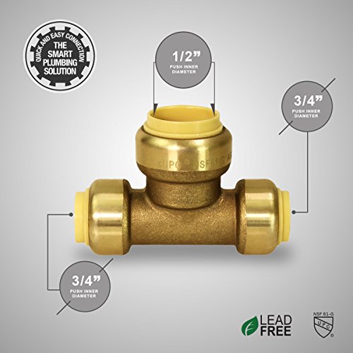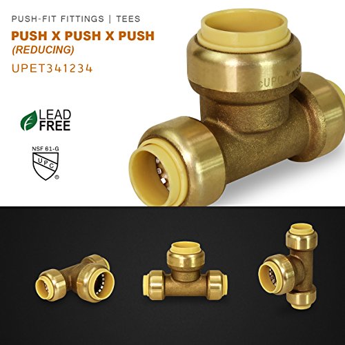 Everflow Pushlock upet341234 3 / 4インチx 1 / 2インチx 3 / 4インチLongプッシュTees push-fit継手、Made w /リードフリーDZR鍛造真鍮、接続Pex、CPVC &銅、pre-lubricatedクイックインストール