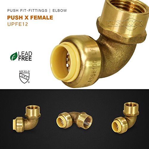 PEX , CPVC ,接続して、銅パイプの任意の組み合わせで認定された飲料水および温水アプリケーションの操作性向上のためにインスタントpush-fit接続1 / 2インチ長いプッシュのメス90度エルボ、製鉛フリーDZR鍛造真鍮ツールを使用することなく、熱なし、接着剤を使用せず、束とはんだ不要、EPDM Oリングのリークフリーシール