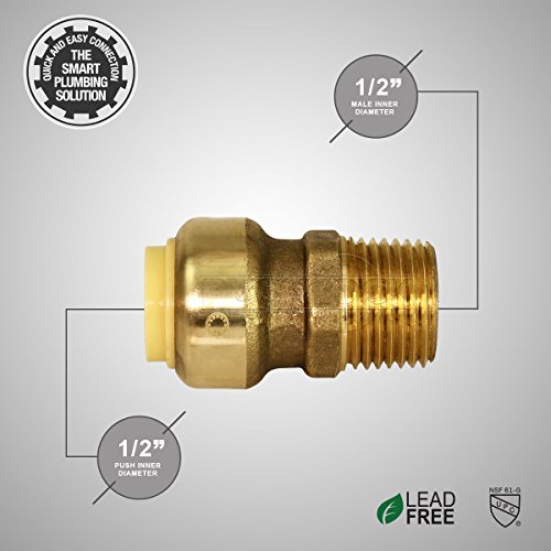 Everflow Pushlock upmc12 1 / 2 Inch LongプッシュXオスアダプタ継手のpush-fit Made、with Lead Free DZR鍛造真鍮、接続Pex、CPVCと銅、pre-lubricatedクイックインストール