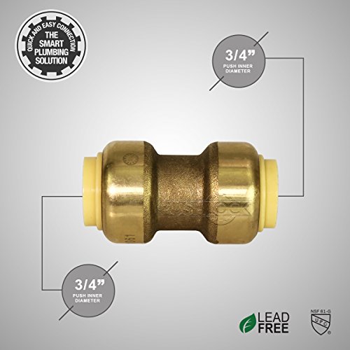 Everflow Pushlock upsc34 3 / 4インチLongプッシュXプッシュカップリング継手のpush-fit製鉛フリーDZR鍛造真鍮、、、Pex CPVCと、銅接続pre-lubricated forクイックインストール