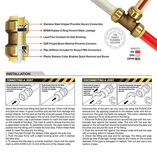 Everflow Pushlock削除ツールプッシュフィット継手uptr034 3 / 4インチ軽量&耐久性プラスチック構造温水暖房、飲料水配布銅接続、CTS CPVC & Pexパイプ