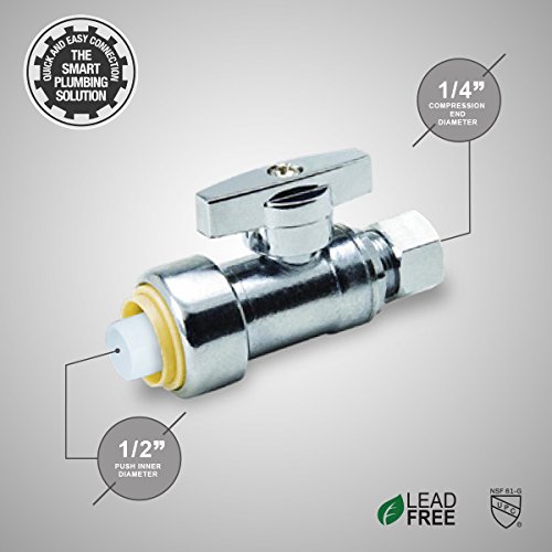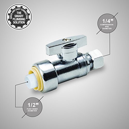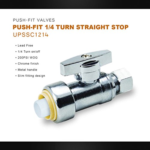 Pushlock upssc1214 1 / 4 Turnストレート停止push-fitバルブ、プッシュ1 / 2 x 1 / 4インチ圧縮、クローム仕上げのW /メタルハンドルとスリム継手設計、鉛フリーConstruction & 1 / 4 Turn On / Offハンドル