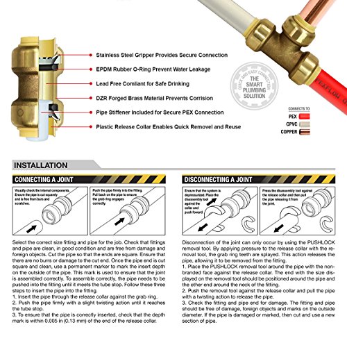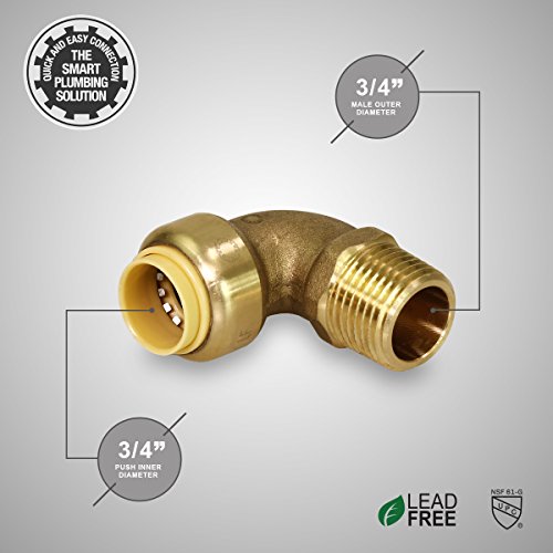 Everflow Pushlock upme34 3 / 4インチLongプッシュXメスエルボ継手のpush-fit Made、with Lead Free DZR鍛造真鍮、接続Pex、CPVCと銅、pre-lubricatedクイックインストール