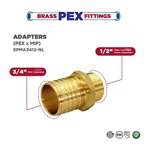 Everflow鉛フリー3 / 4インチPex Barb x 1 / 2インチMIP真鍮アダプタ 3/4" Barb x 1/2" MIP ブラス EPMA3412-NL 1