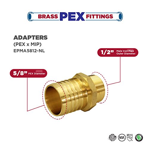 Everflow鉛フリー3 / 4インチPex Barb x 1 / 2インチMIP真鍮アダプタ 5/8" Barb x 1/2" MIP EPMA5812-NL 1