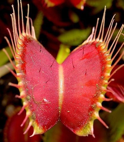 ?Dionaea muscipula Red Road Oxford, a venus fly trap, red traps, long teeth.