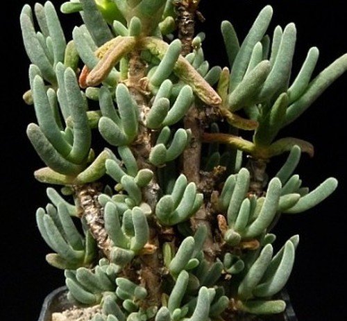 Delosperma nakurense, a bushy decumbent succulent with fleshy leaves, native to South Africa. Flowers solitary, white or pink, about 2.5 cm.