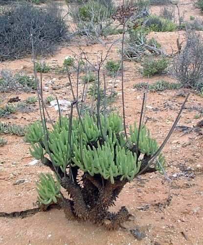 ?Tylecodon wallichii (syn. Cotyledon wallichii), a rare caudiciform, 300 - 500 mm in height, thick, 100mm, stem divides into smaller stems. The subterete leaves appear at the tips of these branches.